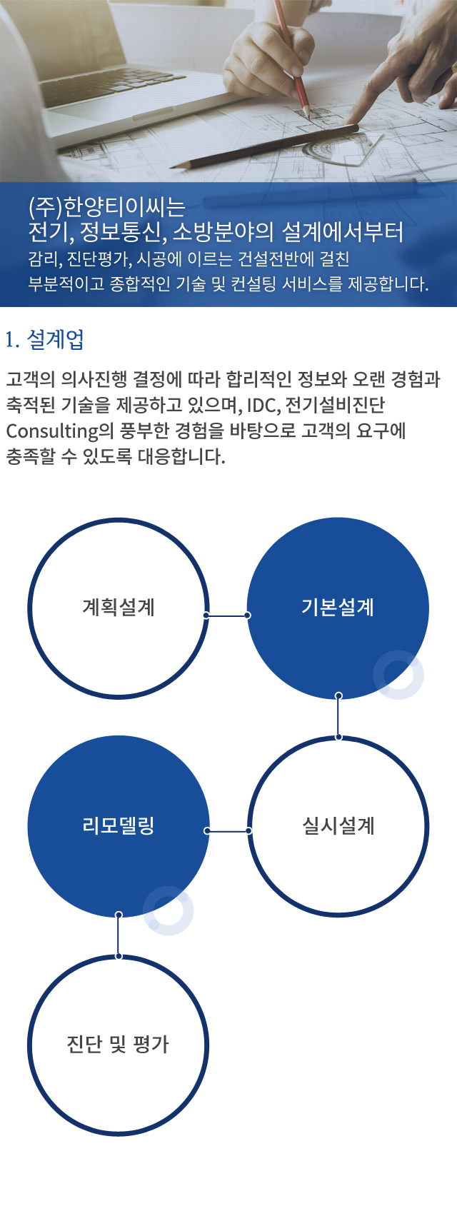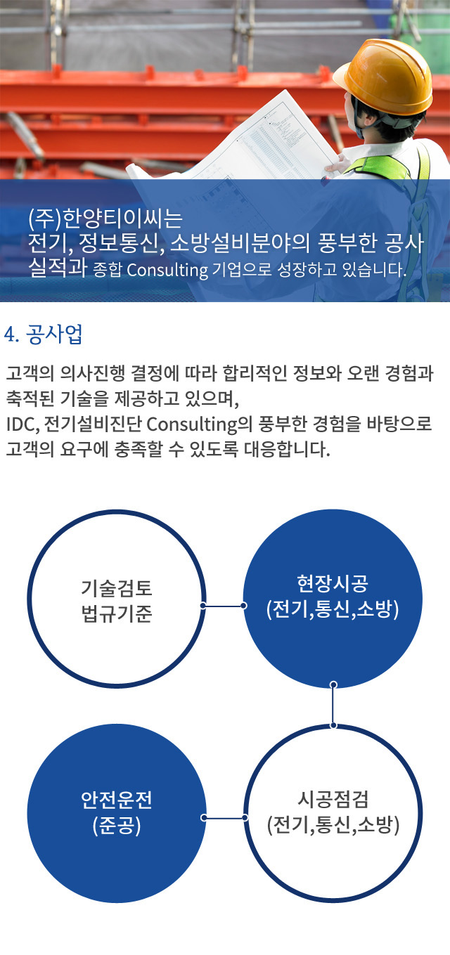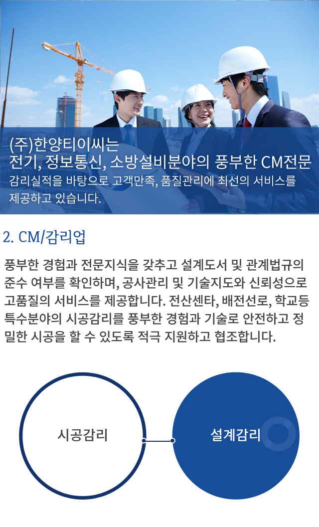 $mNum = "3"; ?> include "../include/header.html"; ?> 이전 사업영역 다음 1. 설계업 1-1) BIM 1-2) BOM 2. CM/감리업 3. IDC, 설비 Consulting 4. 공사업 include "../include/footer.html"; ?>